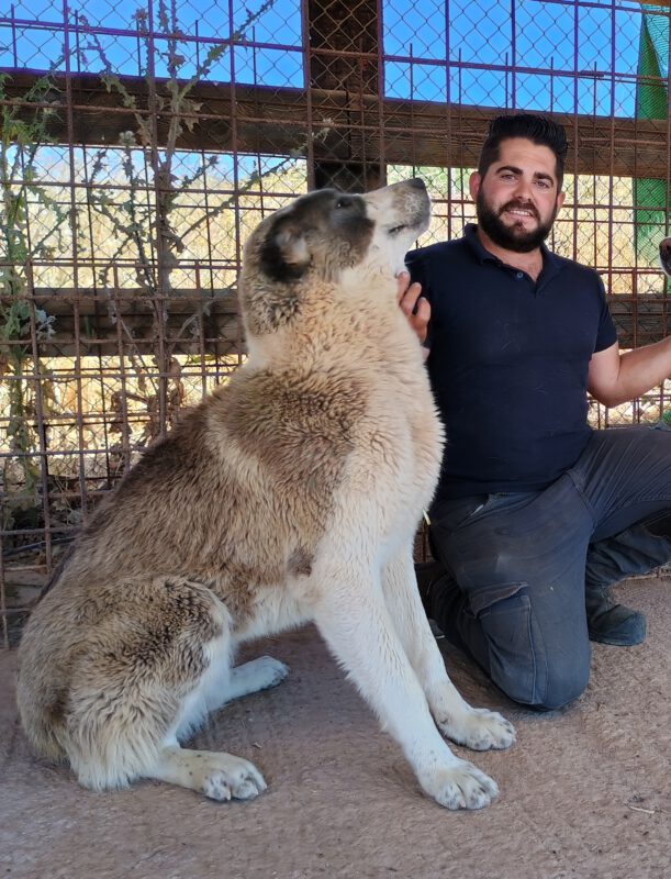 El ALABAI o Mastín de Asia Central es un Moloso originario de las estepas de del interior de Asia donde desarrolla un excelente trabajo como protector de los rebaños de ovejas que recorren anualmente llanuras y montañas en la trashumancia… es un perro extremadamente fuerte y compacto con apariencia de oso… es un perro tranquilo y equilibrado que conoce perfectamente su misión milenaria de protección la cual desarrolla a la perfección expulsando desde lejos a los extraños que se acerquen a su perimetro y saliendo sin dudar al encuentro de lobos y osos a los que se enfrenta sin temor… tambien es un gran guardian de propiedades donde hace una excelente labor patrullando el perímetro de sus dominios… es muy familiar y noble con sus dueños si se integra a la familia a edad temprana generando un vinculo de por vida con niños adultos u otros animales…